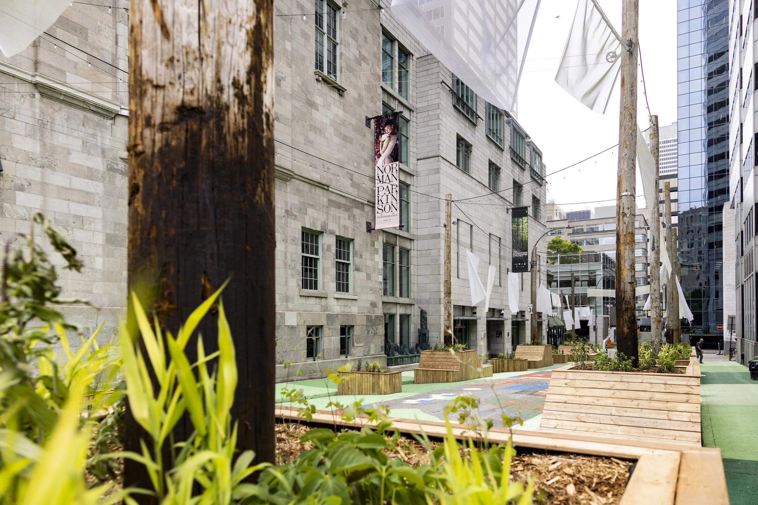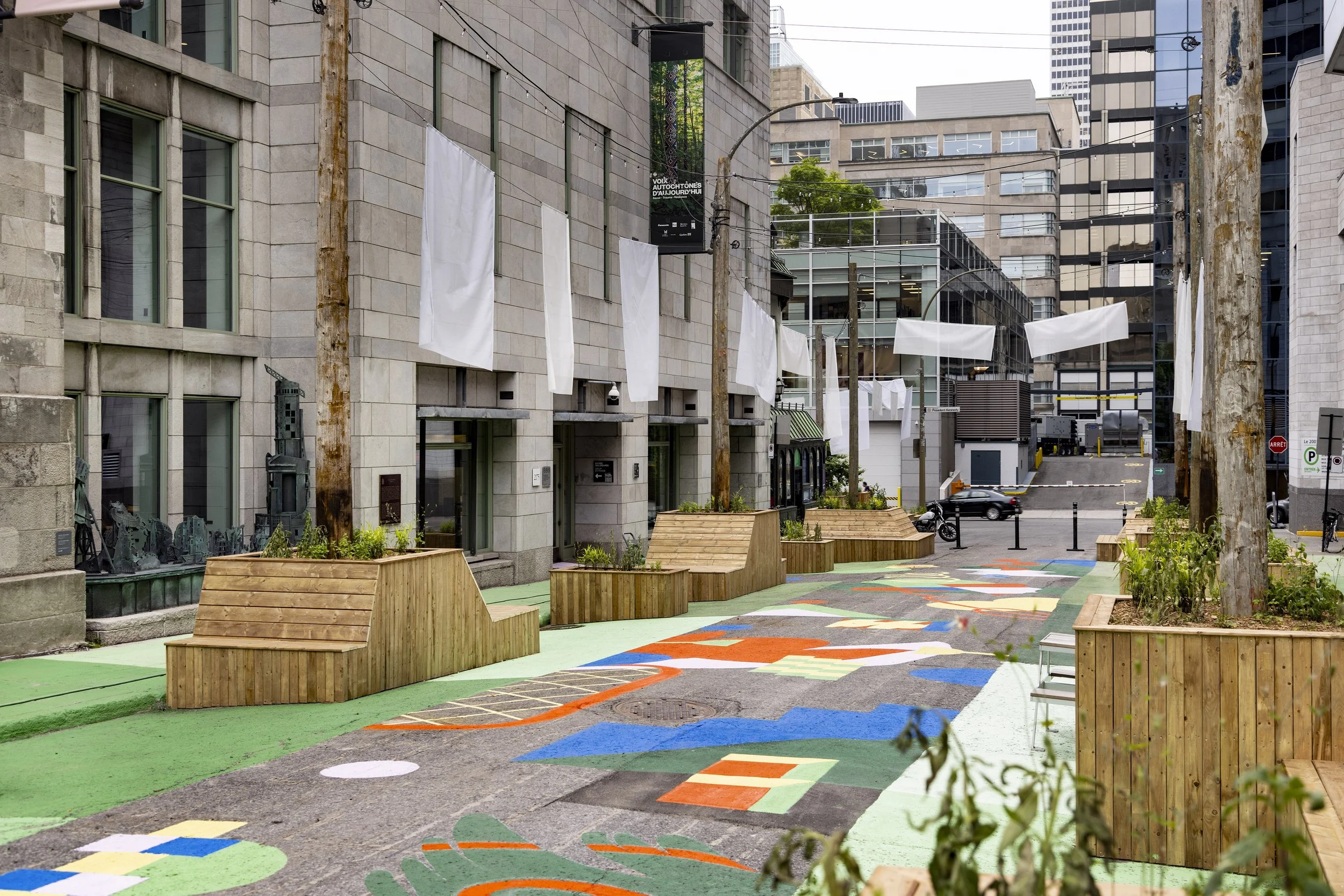 Dans une volonté de raviver l’expérience de la ruelle montréalaise au centre-ville, l’un des quartiers les plus achalandés de la métropole, le Musée McCord Stewart présente la Ruelle du Musée, nouvel espace piétonnisé de la rue Victoria. Réalisé par KANVA, cet espace plonge le public dans l’imaginaire de la ruelle montréalaise, en invitant les passants et passantes à s’y asseoir pour flâner, discuter, se rencontrer, dans l’entourage de cordes à linge bien garnies de draps et de vêtements. Complètement végétalisée, la Ruelle du Musée rappelle les plus belles ruelles vertes de la Ville, où les urbains et les urbaines s’imprègnent de la nature.